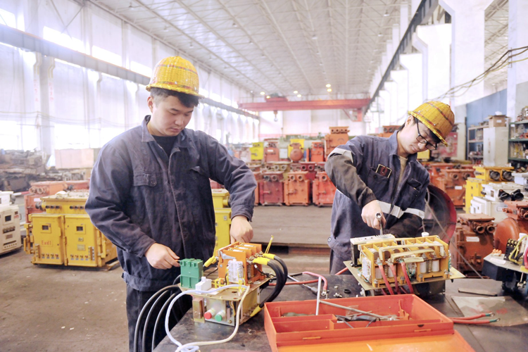 为保证设备使用安全,实现至年底安全生产,煤业公司顾桥矿认真总结分析设备运行状态,加强对设备的检修、维护和管理,确保设备高效运行。图为该矿机电修配中心综电班职工正在对拆出的磁起开关本体进行检修。(陈恩文 摄)