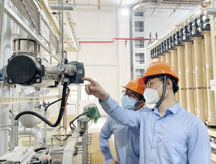 电力集团潘集电厂建设项目部统筹抓好疫情防控和项目建设,咬定“双投”目标不动摇,加快建设进度,严格落实施工现场各项安全管控措施,确保安全施工。图为该项目部职工对就地开关状态进行检查。(姚峰 摄)