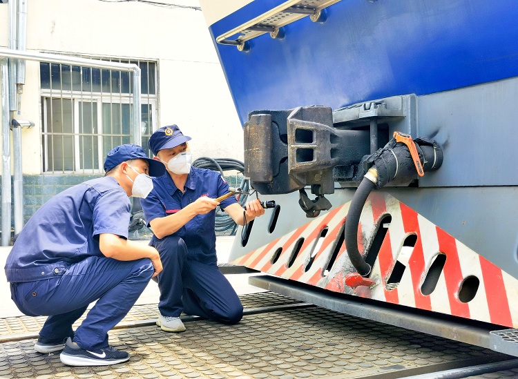 潘谢铁路是淮南煤炭运输的大动脉,担负着运煤保电的重大任务,为夯实铁路运输安全基础,淮河能源股份铁运分公司精细做好内燃机车检修、保养工作,确保各项任务顺利完成。 图为内燃机乘务员出乘前检查机车部件安全状态。(王雪琳 摄)