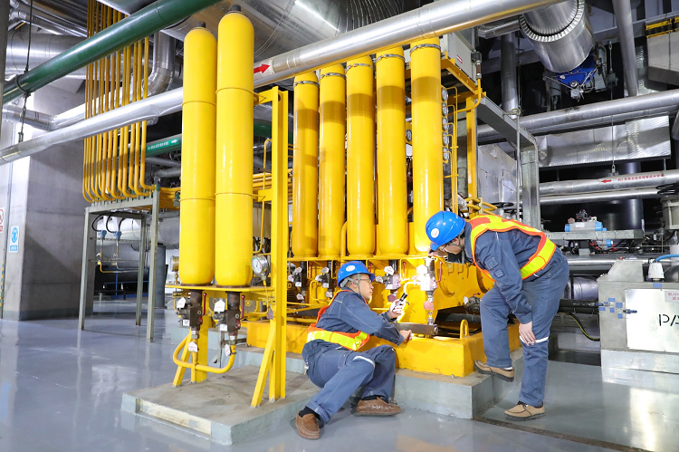 淮沪煤电公司田集电厂层层落实安全保电责任,细化到岗、分工到人,彻底消除安全盲区和死角。目前,该厂四台机组运行状态良好,各项迎峰度冬能源保供准备工作安全有序推进。图为该厂生技部汽机点检班工作人员排查机组EH油系统安全隐患。(胡锦海 摄)