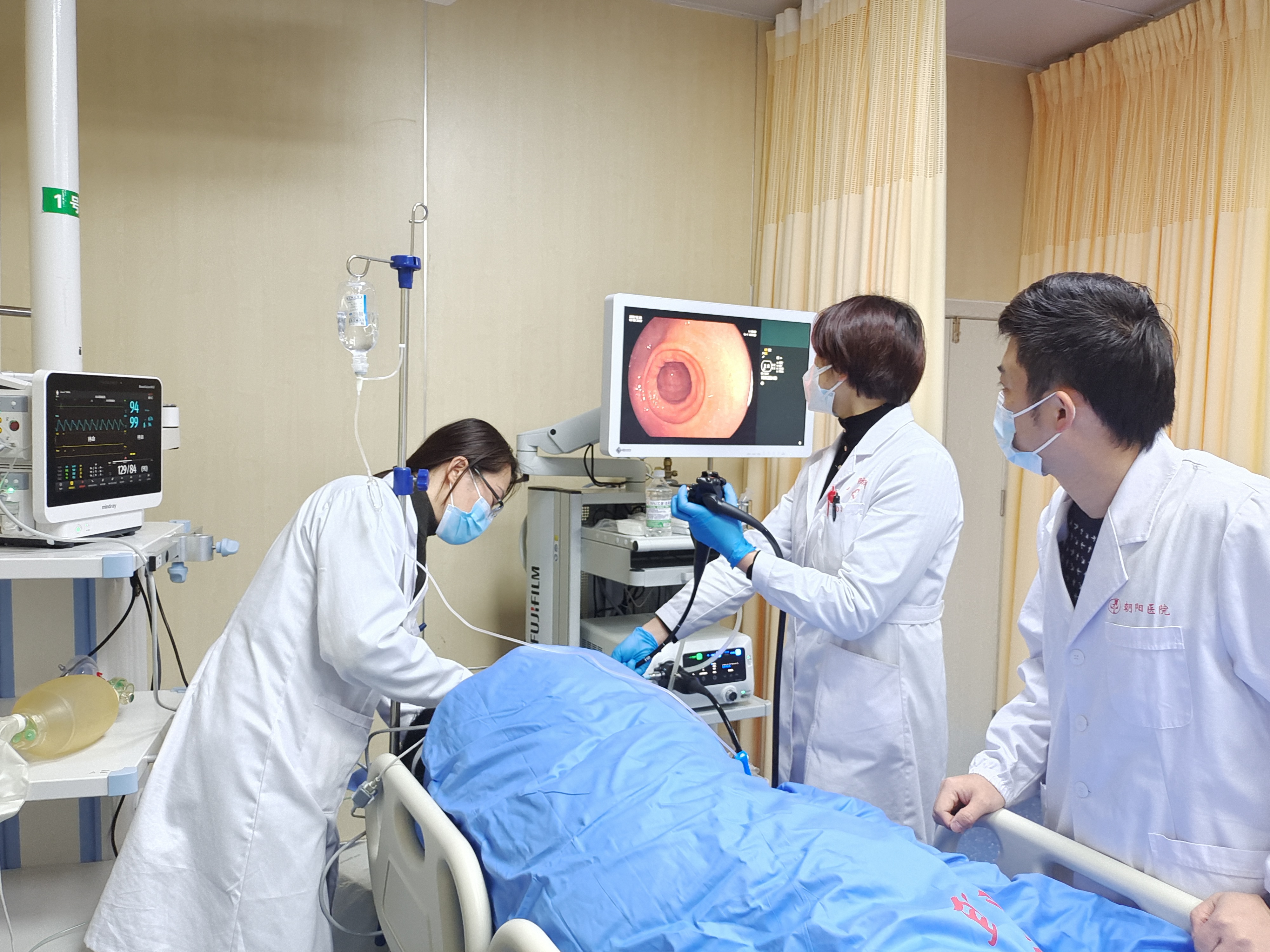 近日,健康产业集团职防院内窥镜中心顺利开诊,并进行了首例胃镜检查。内窥镜中心作为职防院新建科室之一,筹备工作一直在紧锣密鼓地进行。无痛电子内镜室位于体检中心三楼东侧,是集胃镜、肠镜于一体的综合性胃肠镜室,设有胃肠镜检查室、洗消站、复苏室、胃肠镜储藏室等,实现了胃肠镜清洗、消毒、存放无缝对接,有效避免二次污染。图为医务人员为就诊职工进行胃镜检查。(王元梅 摄)