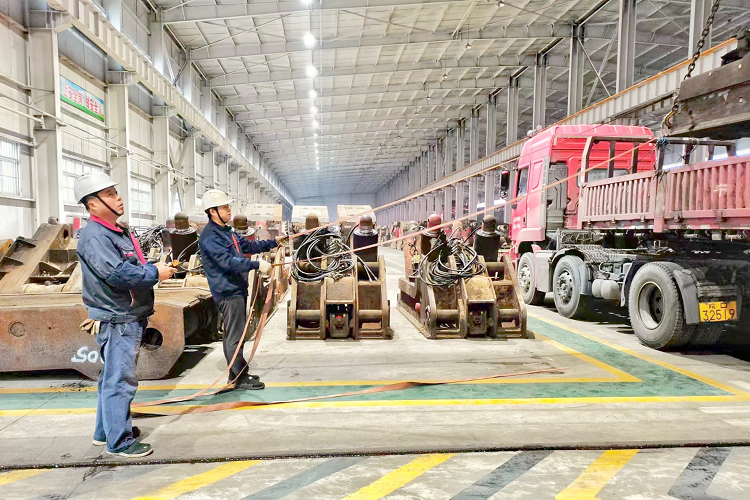 煤业公司设备租赁公司积极开展“上标准岗、做安全人”活动,在库区大件起吊工作中,坚持采用远距离调向绳的同时,严把人员站位等操作细节,为顺利实现全年安全生产任务目标打下坚实基础。图为该公司装卸人员采用双头远距离调向绳装卸设备。(王兴华 摄)