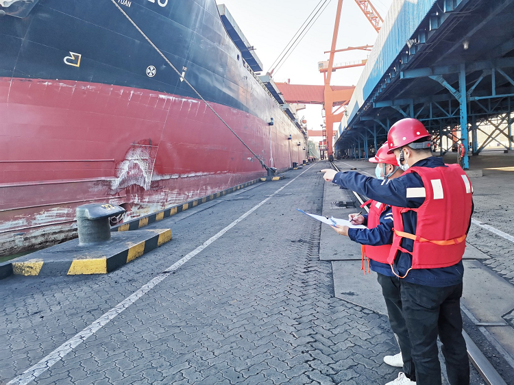 春节以来,煤炭销售中心超前谋划方案,统筹发运计划,规范出港管理,全力以赴确保春节期间煤炭中转发运工作有条不紊开展。图为该中心驻曹妃甸中转站职工正在核对煤炭装船情况。(曹翔 徐跃 摄)