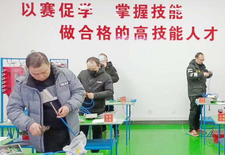 为有效提升职工业务技能,规范职工操作标准,煤业公司潘二矿于近日开展了安全仪器监测工实学实训活动。进一步提高职工在安全监控设备常见故障排除及设备安装操作等方面能力。图为该矿监控一工区职工实训培训现场。(侯洋洋 摄)