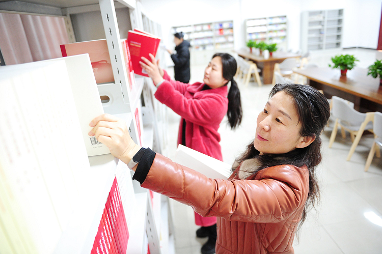 为进一步丰富职工精神文化生活,提升学习力思考力,煤业公司朱集东矿职工书屋新增藏书二千余册,涉及党建、专业技术、管理、文学等方面。该矿要求积极引导职工多读书、读好书,让职工书屋成为职工思想教育、学习充电、汲取知识的“精神驿站”。图为该矿党群工作部工作人员正在为新书上架。(铁辉 摄)