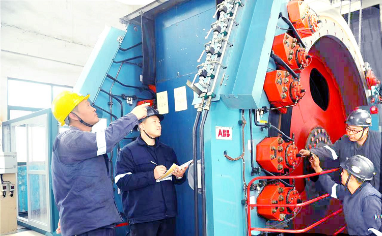 近日,煤业公司谢桥矿按照集团公司相关要求,扎实开展安全专项检查,对检查中发现的问题,按照“五定”要求限期整改,闭合管理,确保全国“两会”期间安全生产。图为该矿检修人员在二主井检查绞车闸控系统。(魏强 摄)