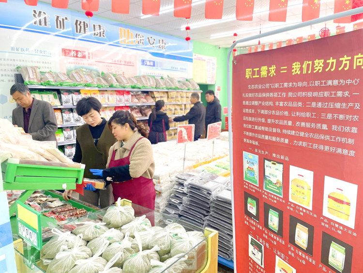 健康产业集团生态农业公司坚持以专业化、高品质为方向,加大内部抽检频率,做好外部送检,统一为市区保供点补充品质过硬的农产品。近期将在淮河能源APP和淮河新媒APP开通账户二维码,努力为顾客提供高品质的商品和服务。图为3·15国际消费者权益日前夕,企业职工、家属在洞山保供点选购农品。(于晨晨 摄)