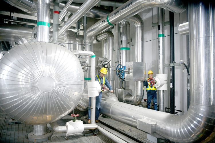 淮沪煤电公司田集电厂坚持绿色发展理念,充分发挥煤电一体化优势,以争创国家电投安健环体系“四钻三星”企业为契机,做好设备调整、检修和试验,有效降低设备缺陷率,促进机组运行清洁高效。图为该厂运行人员正在对3号机组低压加热系统进行检修维护。(陈恩文 摄)