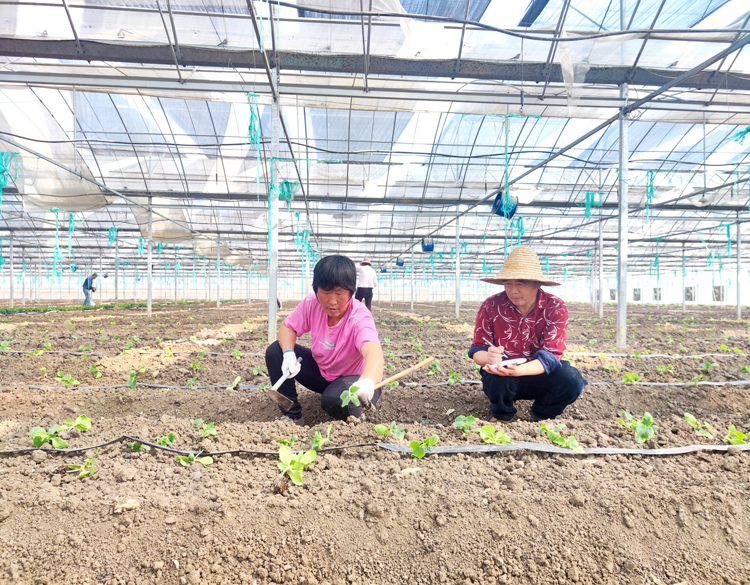 连日来,面对晴好天气,健康产业集团生态农业公司积极开展春耕春种。通过机械化作业,在田间进行病虫害防治、清除杂草等,把准苗情,持续做好春季田间管理。目前,该公司已完成25亩左右的大小黄瓜、甜瓜日光大棚定植作业。图为该公司职工正在大棚里定植黄瓜。(王思琦 摄)