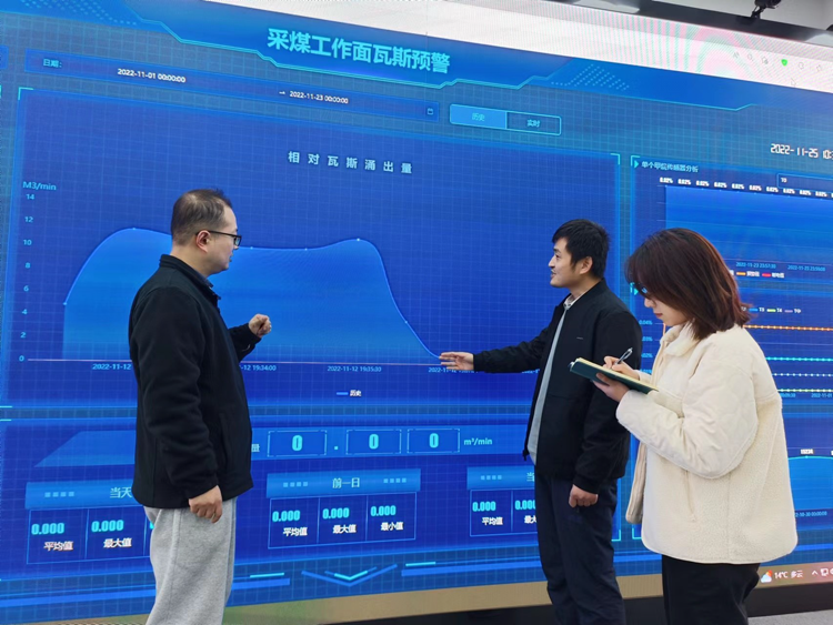 今年以来,工程院持续优化完善科技创新体制机制,围绕瓦斯治理、水害防治、深井地压、固废处理等难题开展深入研究,并以问题为导向组织科研创新,切实为矿井安全生产提供技术支撑。图为该院深部实验室科研人员正在分析瓦斯数据。(徐璐璐 摄)