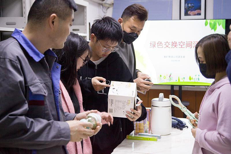 近日,淮矿物流公司团支部开展“绿色交换空间”活动,组织广大职工将闲置物品拿出来进行“绿色”无偿交换,让闲置物品成为他人的宝贝,将“无用”换成“有用”,实现物尽所用、循环利用。图为该活动开展现场。(殷航 王洁洁 摄)