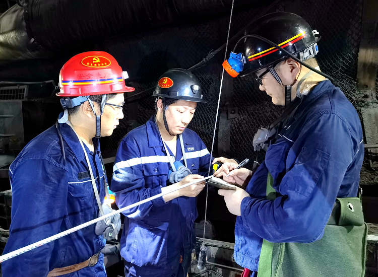 淮浙煤电公司顾北矿把加强巷道“九条线”管理作为保障主体工程质量的重要抓手,进一步强化日常动态监管,确保按照设计标准进行掘进施工。图为该矿综掘二区职工正在对施工巷道分中进行测量。(万新 摄)