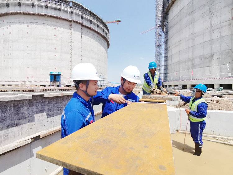 为了确保芜湖LNG内河接收(转运)站项目安全有序施工,燃气集团按照集团公司安全生产月活动有关要求,通过组织人员加强现场巡查、实施安全交底等措施,确保现场施工安全。图为工作人员正在现场开展安全质量检查。(尹欣 摄)