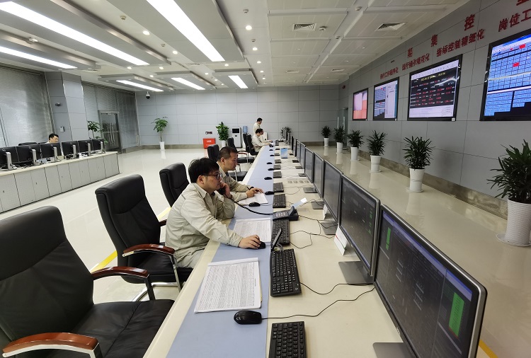 淮沪煤电公司田集电厂加强发电管理,加强燃料保障,提高检修频次,全力以赴做好迎峰度夏期间安全稳定发电,保障区域能源稳定供应。 图为田集电厂职工正在一期集控室监测设备运行情况。(孙飞 摄)