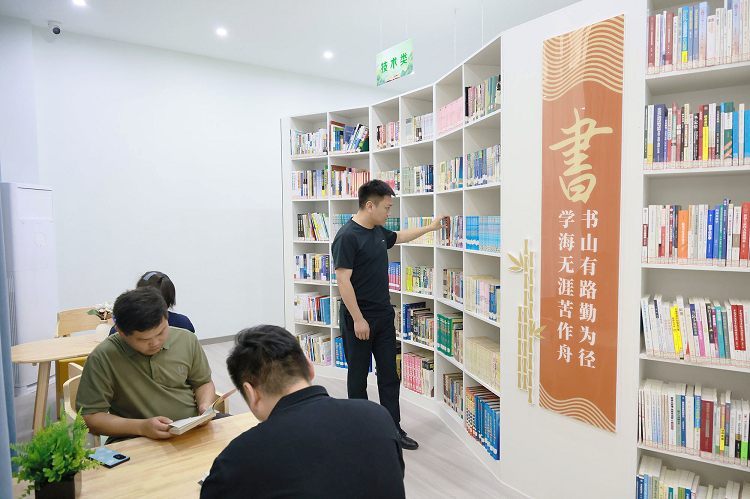 煤业公司谢桥矿认真践行“学习力+思考力=能力”理念,高标准建设职工书屋,现已正式启用。该职工书屋包括藏书区、阅读厅、电子阅览区、朗读亭等功能区,满足职工多样化的学习需求,使职工读有书本、阅有报刊、学有去处,进一步培育学习文化,营造书香矿区的浓厚氛围。图为该矿职工在职工书屋阅读学习。(程童 胡涛涛 摄)