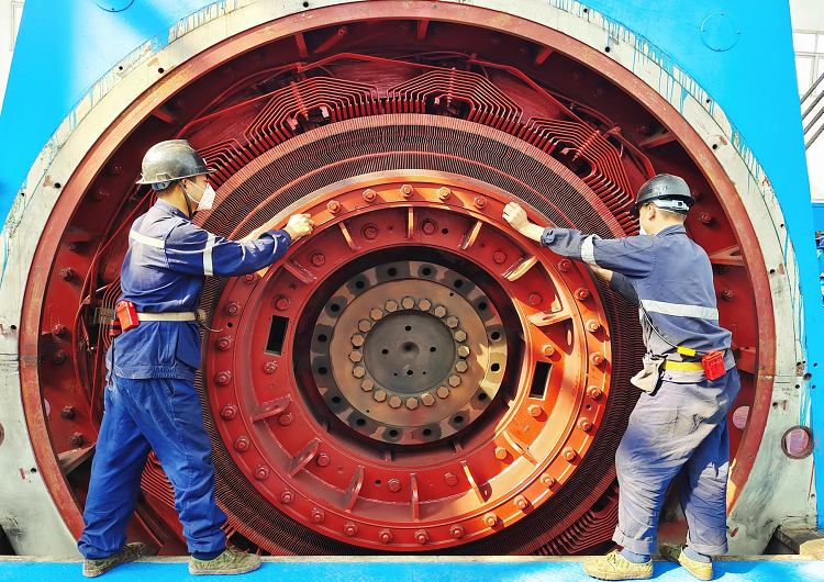煤业公司顾桥矿严格落实主提升系统强制性检修制度,在保证每天不少于规定时间检修同时,安排专人跟踪检修质量及备品备件的储备工作,确保有效开机率。图为该矿绞车一队职工正在检修单罐主电机换向器。(苏雨婷 摄)