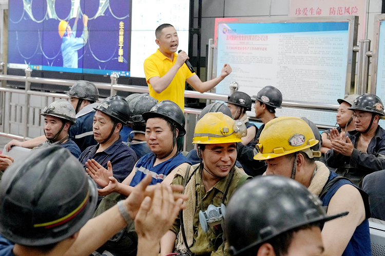 日前,煤业公司潘三矿认真做好安全宣教工作,积极组织人员深入井口、班前,开展安全主题文艺汇演等职工喜闻乐见的慰问活动,在轻松活泼、寓教于乐的氛围里不断增强职工安全意识。图为该矿工作人员在井口等候室献唱安全主题歌曲。(张士好 摄)