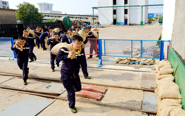 煤业公司潘三矿认真落实集团公司防汛工作相关要求,模拟突发汛情,在副井井口开展防汛应急联合演练,进一步提升矿井防汛应急处置能力,确保安全生产。图为该矿职工在副井口开展防汛应急演练。(张士好 摄)