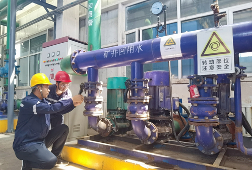 西部煤电集团唐家会矿高度重视矿井水全资源利用,将处理后的矿井水用于矿山生产及绿化,在解决矿井水排放难题的同时,最大限度提高水资源利用率,实现矿山绿色环保、高效节能发展。图为该矿工作人员正在对矿井回用水设备进行检修维护。 陈恩文 摄