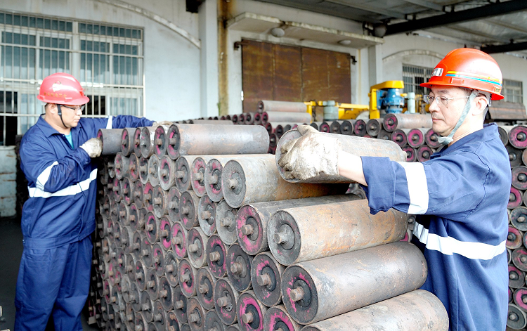 淮浙煤电公司顾北矿严格对照集团公司厂矿工业广场文明创建“净化、绿化、硬化、亮化、定置量化、常态化”的“六化”标准,将定置量化工作与修旧利废相结合,以实际行动美化矿区环境,共建共享幸福美好家园。图为该矿机电修配中心职工对升井皮带机托辊进行挑选修复后,按标准进行分拣堆放。(谢雨璇 摄)
