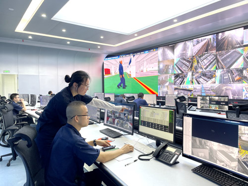 煤业公司选煤分公司潘集选煤厂以数智赋能推进“四个替代”,取消现场固定岗位,建设8个智能工位,实现工位远程操控,现场无人操作、有人巡检,以“工位”替代“岗位”。图为工作人员通过信息、视频等监控,远程操控现场生产。 张旭 摄
