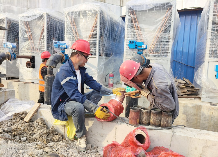 煤层气公司充分利用秋季施工黄金季节,倒排工期、统筹安排,加紧推进朱集发电站二期工程建设,确保工程保质保量按期完工。图为施工现场正在进行发电机组脱水管路焊接。(王斌 张旭 摄)
