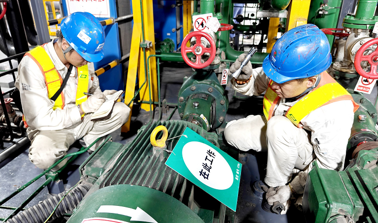 为备战迎峰度冬,全力抓好能源保供工作,连日来淮沪煤电公司田集电厂充分利用机组调停有利时机,全面开展设备隐患排查、缺陷处理等检修工作,确保机组安全稳定运行。图为该厂检修部汽机班员工在对2号机组定冷水泵进行对轮中心测量、调整。(胡锦海 摄)