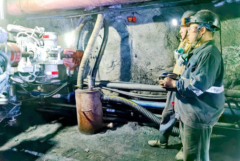 煤业公司潘三矿积极推动“以孔代巷”、定向软煤长钻孔等新型钻孔施工工艺技术在矿井应用推广,为进一步提高瓦斯治理效果,保障矿井安全生产稳定夯实基础。 图为该矿抽排队钻机班职工正在进行钻孔施工作业。 张士好 摄