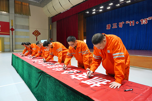 安全是最大的政治、最大的效益、最大的民生。11月13日上午,潘三矿通过安全宣誓、安全签名、图牌板宣传等方式开展警示教育活动,旨在以史为鉴,教育干部职工铭记事故教训,守牢安全底线,确保矿井长治久安。图为职工进行安全承诺签名。 陈恩文 代龙飞 摄