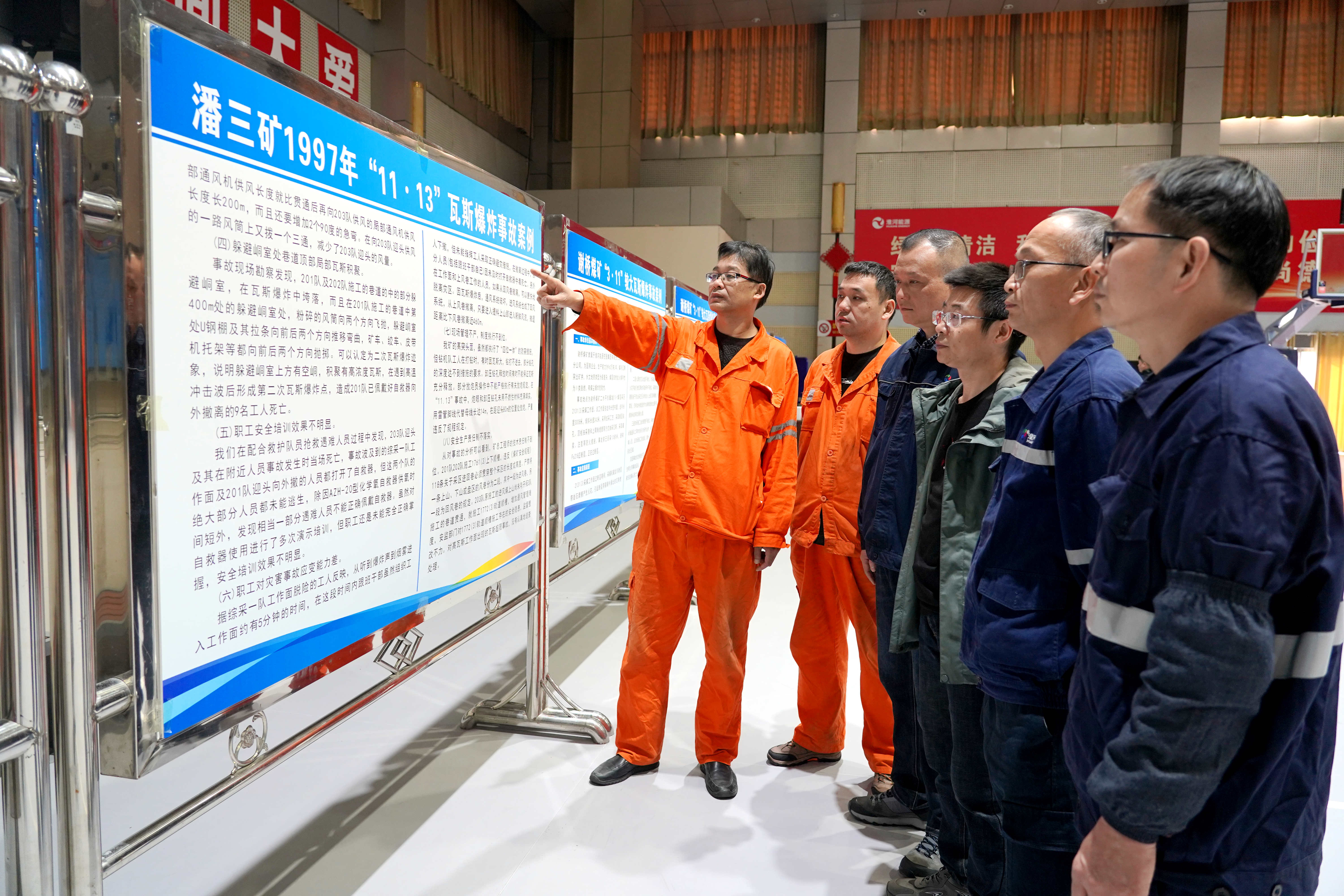 安全是最大的政治、最大的效益、最大的民生。11月13日上午,潘三矿通过安全宣誓、安全签名、图牌板宣传等方式开展警示教育活动,旨在以史为鉴,教育干部职工铭记事故教训,守牢安全底线,确保矿井长治久安。图为职工观看瓦斯事故案例展板。 陈恩文 代龙飞 摄